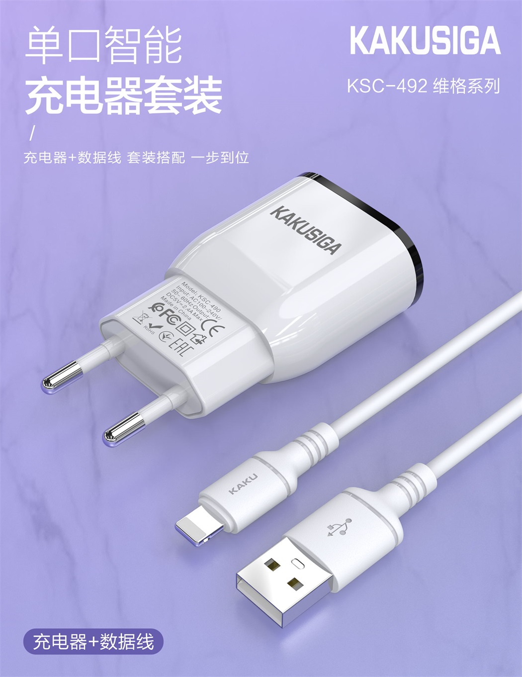 产品名称:创明系列 双口智能充电器套装(欧规 Lightning线)