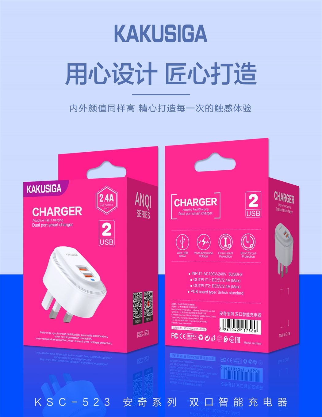 产品名称:安奇系列 双口智能充电器 (英规)