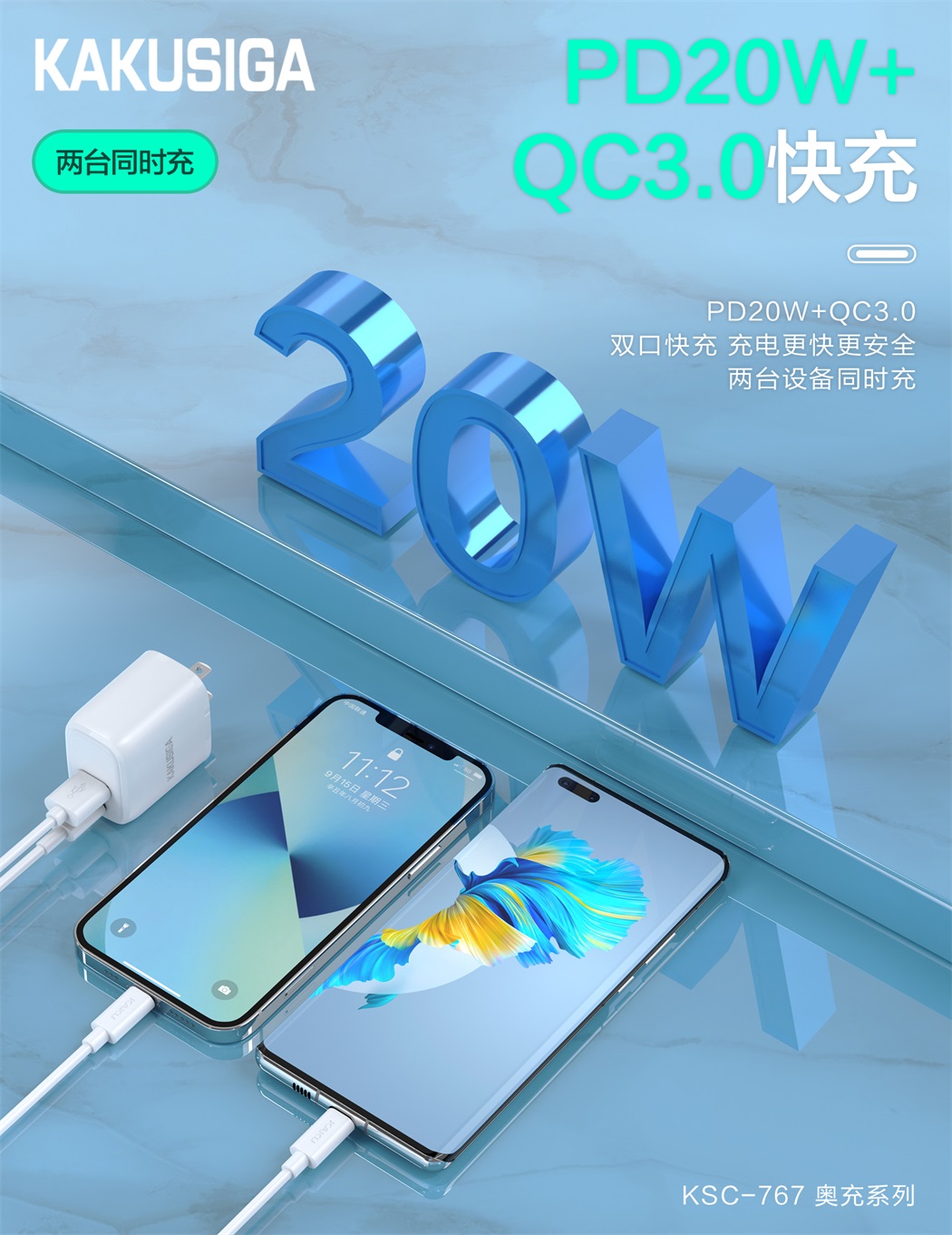 产品名称:奥充系列 PD20W+QC3.0快充充电器(美规)