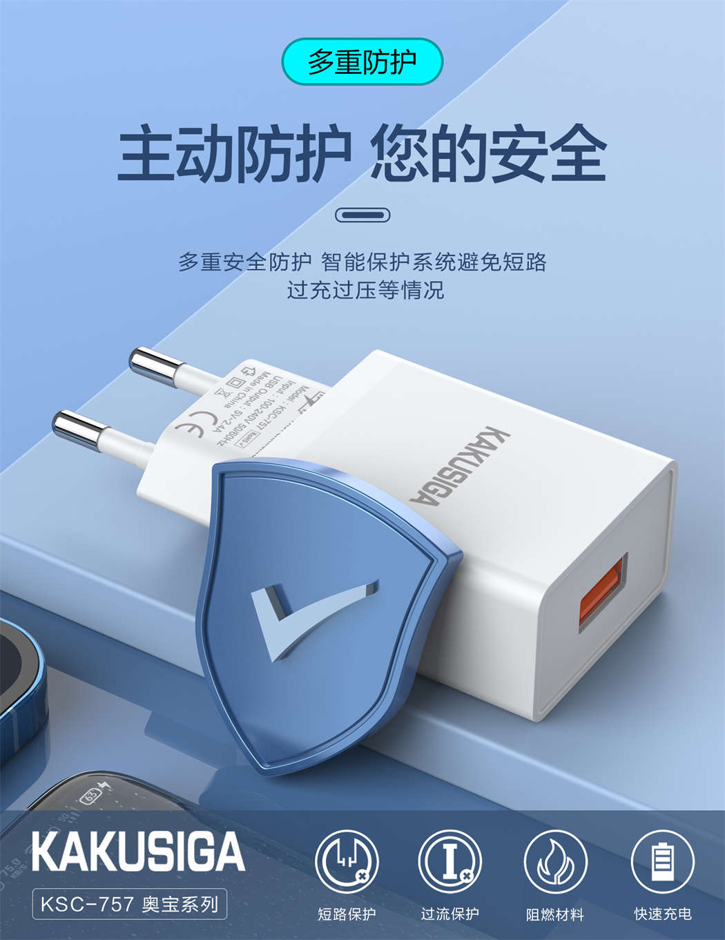 产品名称:奥宝系列 单口智能充电器 白色(欧规)