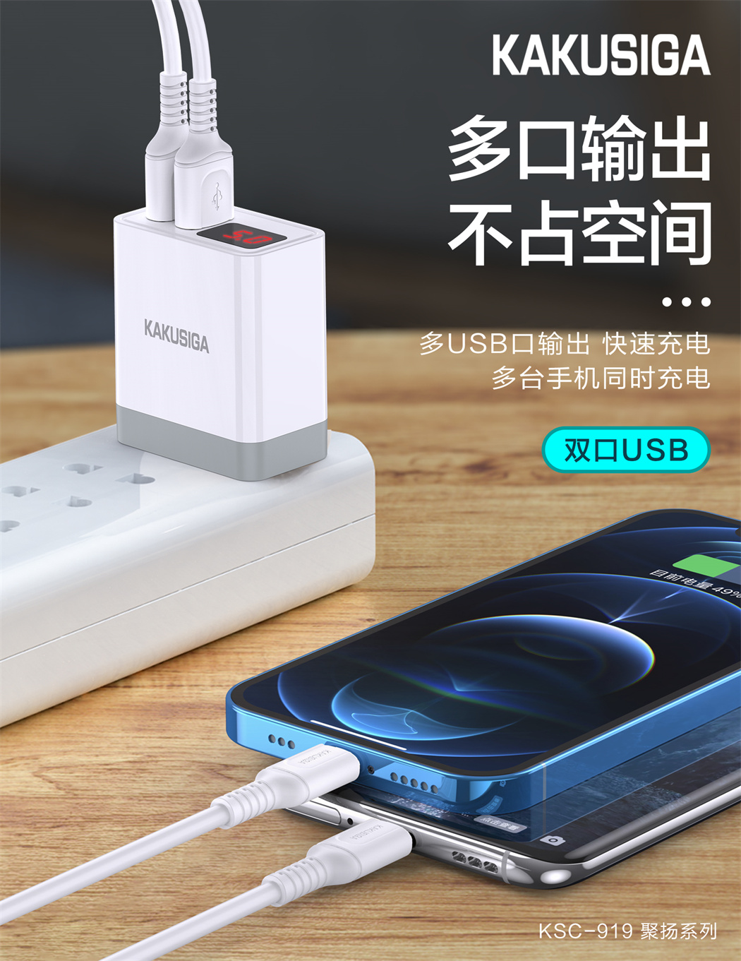 输出:USB1:5V=2.4A ; USB2:5V=2.4A