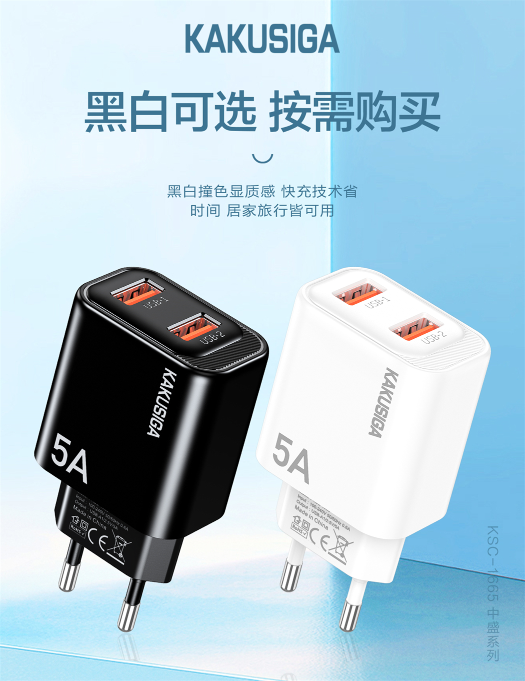 产品名称:中盛系列 双口充电器(欧规)