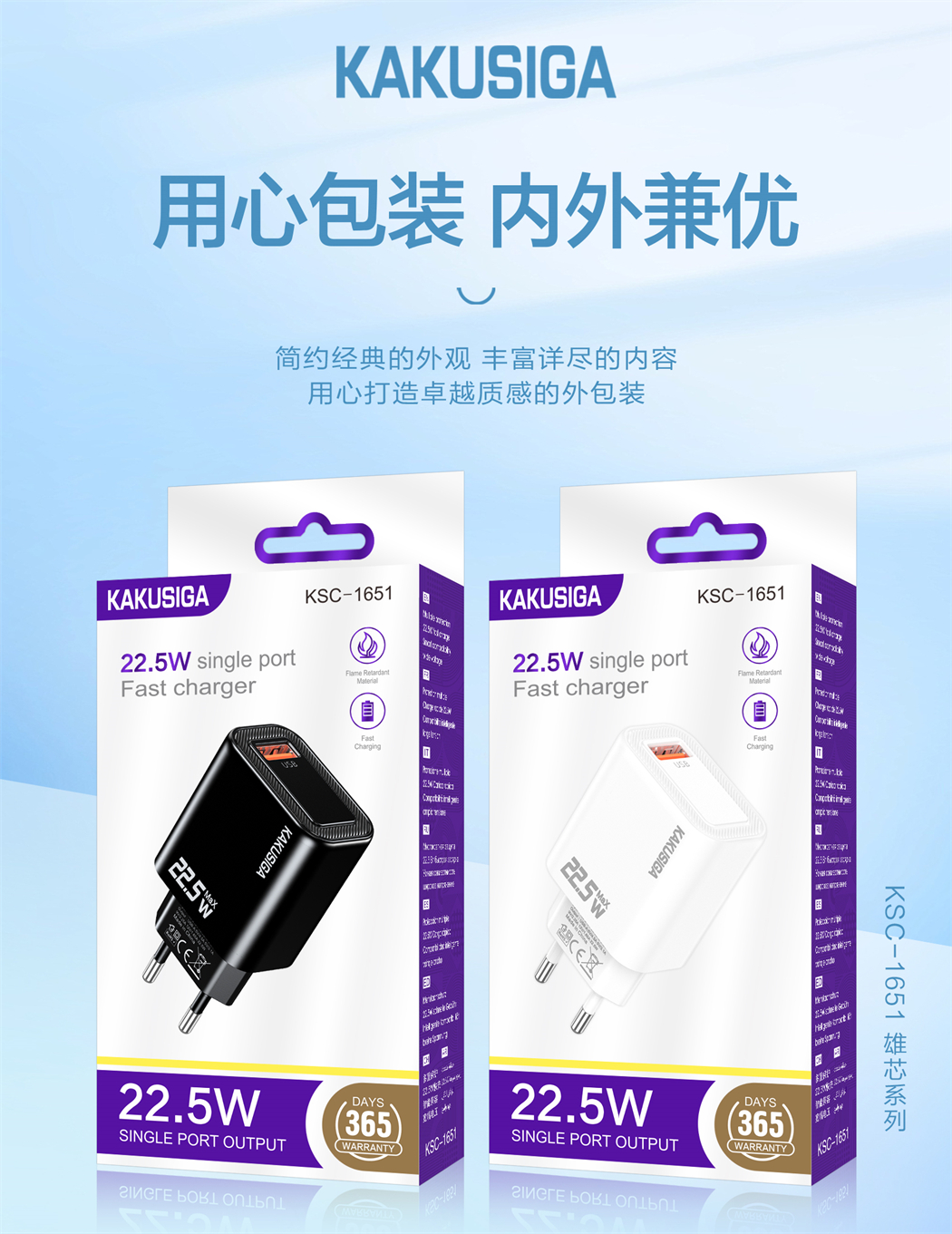 产品名称:雄芯系列 22.5W充电器(欧规)