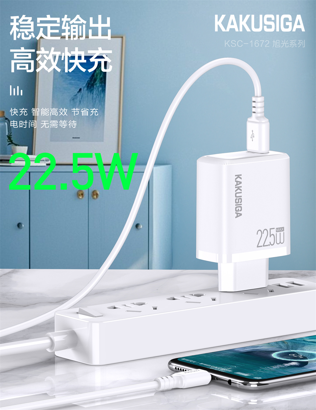 产品名称:旭光系列 22.5W充电器套装(欧规)USB to Micro