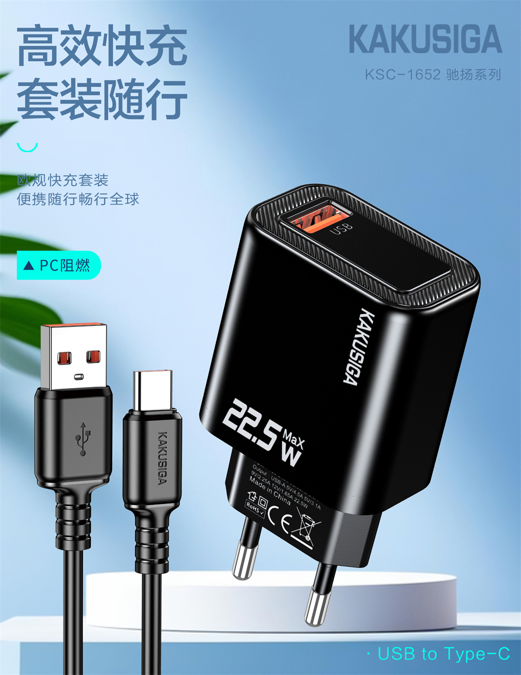 产品名称:驰扬系列 22.5W充电器套装(欧规)USB to Type-C