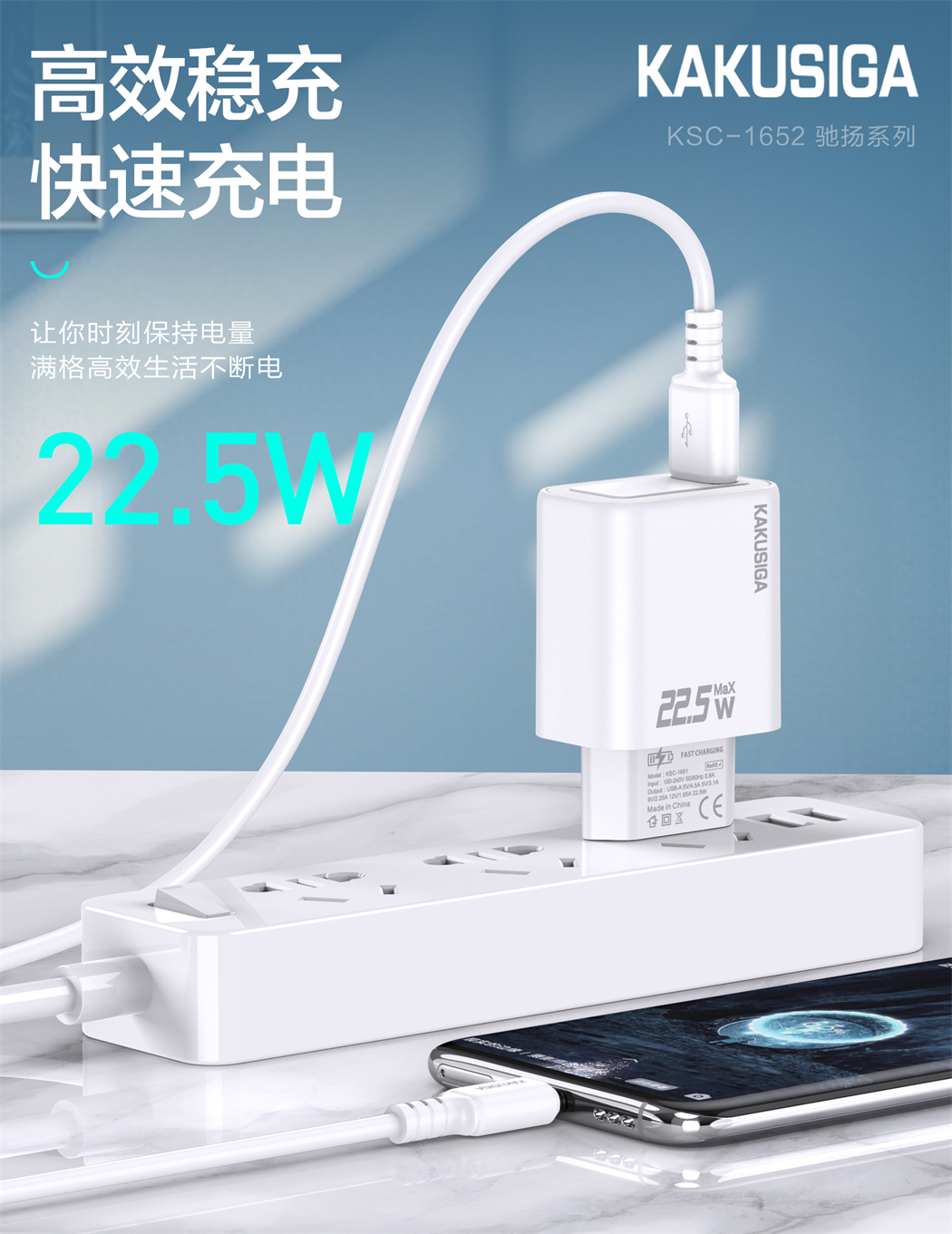 输出:USB-A:5V/4.5A 5V/3.1A 9V/2.25A 12V/1.65A 22.5W