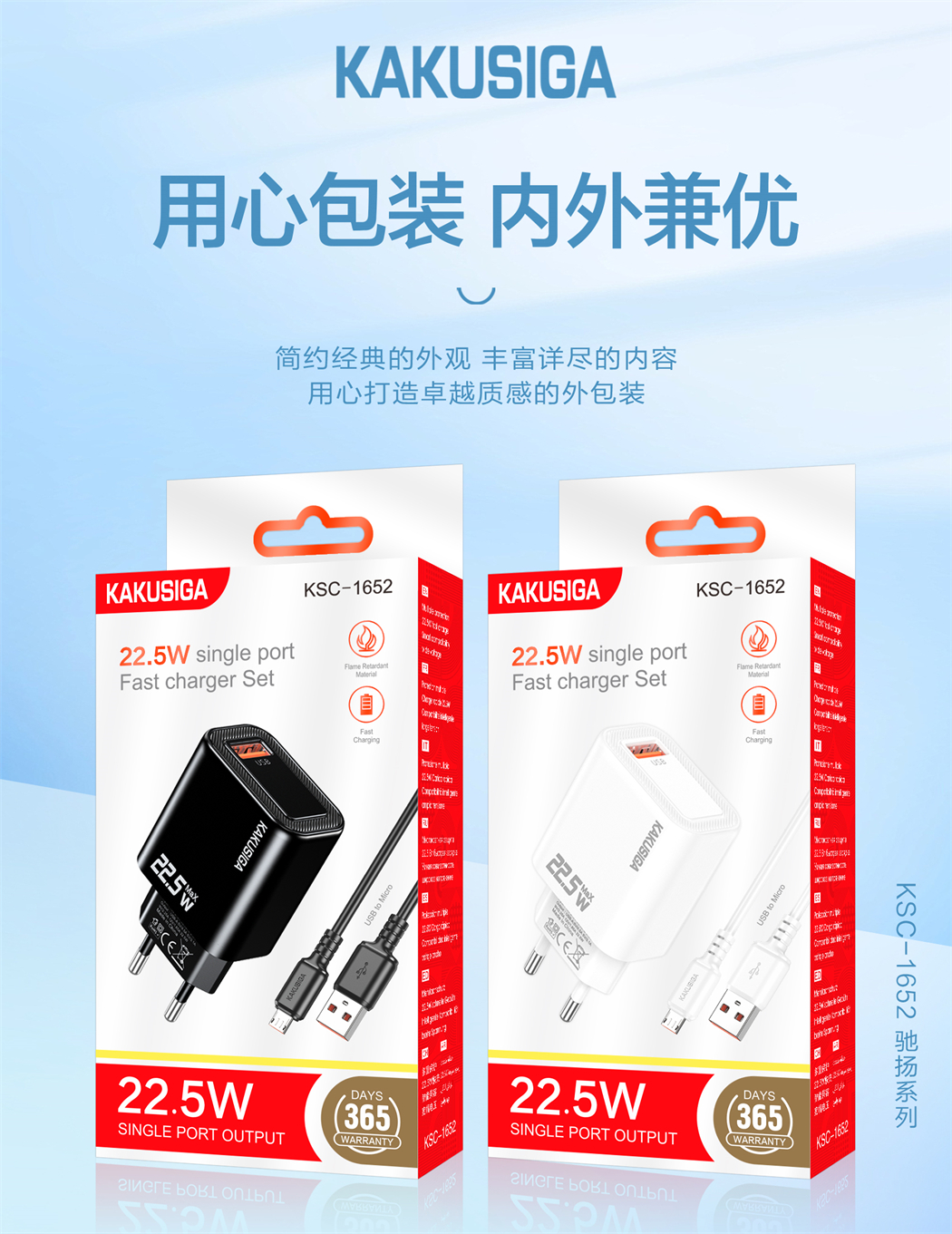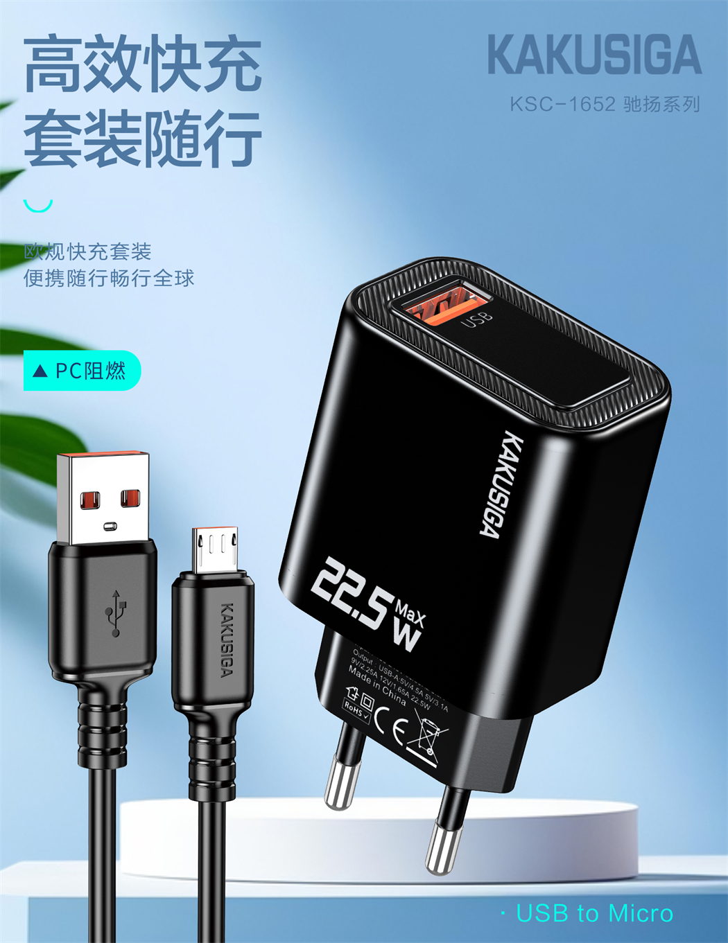 产品名称:驰扬系列 22.5W充电器套装(欧规)USB to Micro