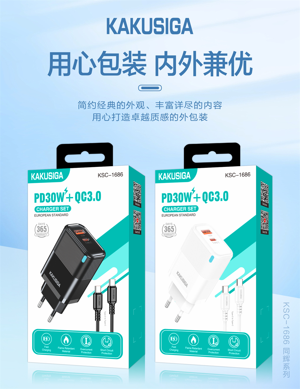 产品名称:同辉系列 PD30W+QC3.0充电器套装(欧规)Type-C to Type-C