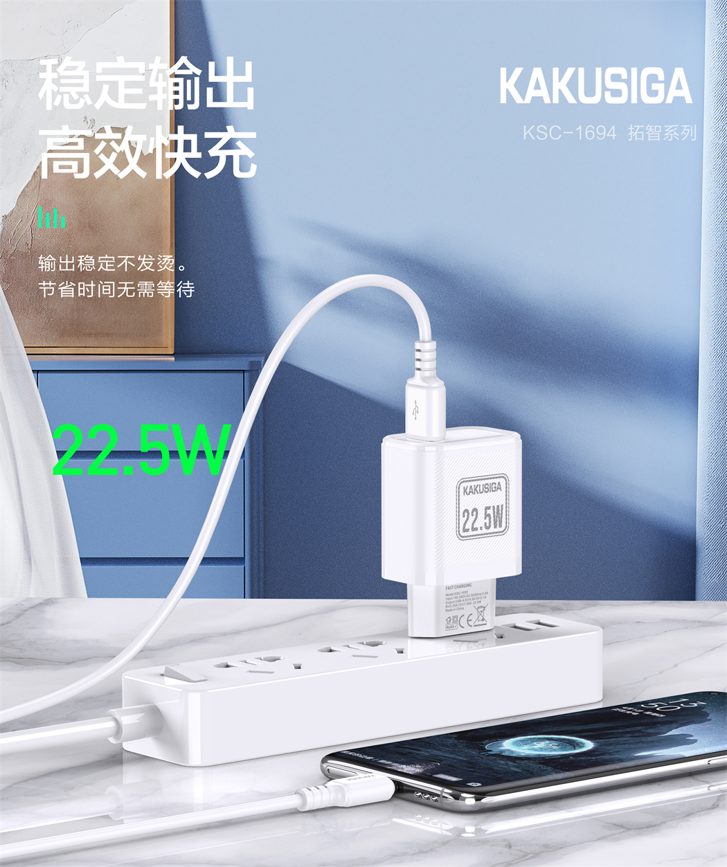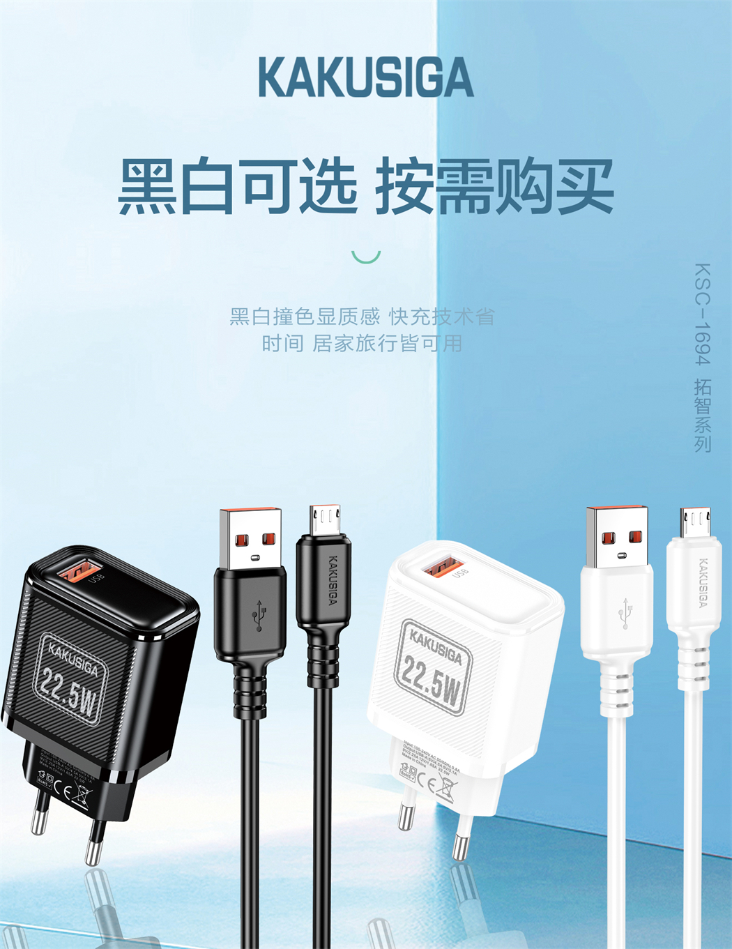 产品名称:拓智系列22.5W充电器套装(欧规)USB to Micro