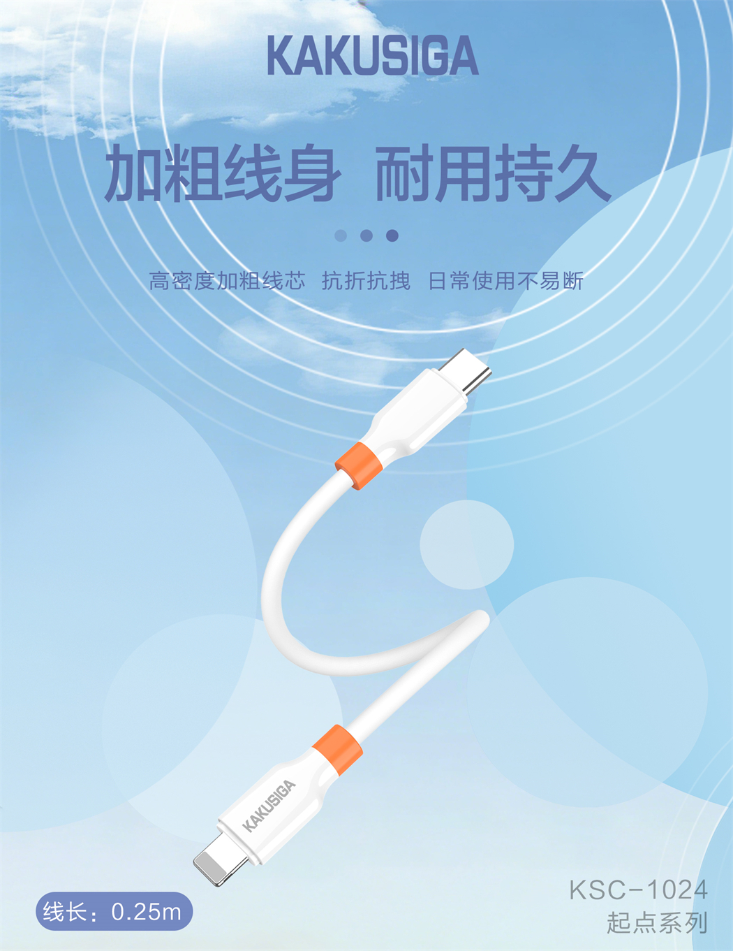 产品名称:起点系列Type-C to Lightning 快速充电双色硅胶线 0.25米
