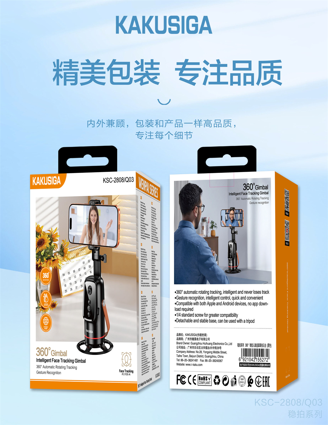 产品名称:稳拍系列360°智能人脸追踪跟拍云台