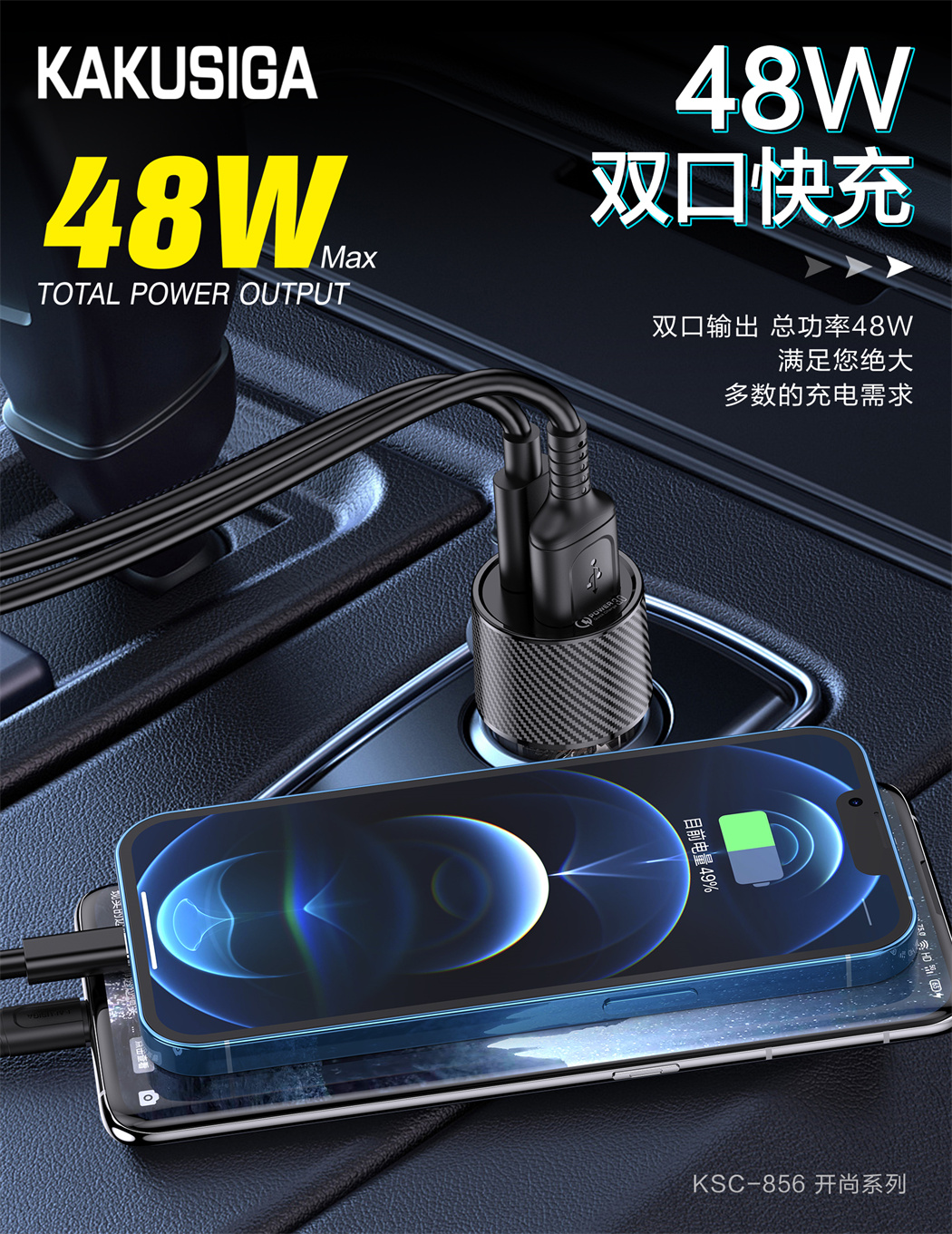 产品名称:开尚系列 双口PD30W+QC3.0车载充电器套装 Type-C to Lightning