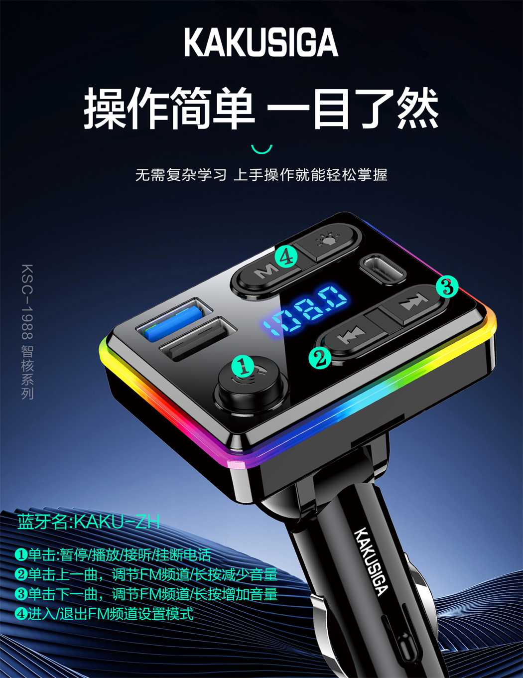 产品名称:智核系列 车载蓝牙FM发射器