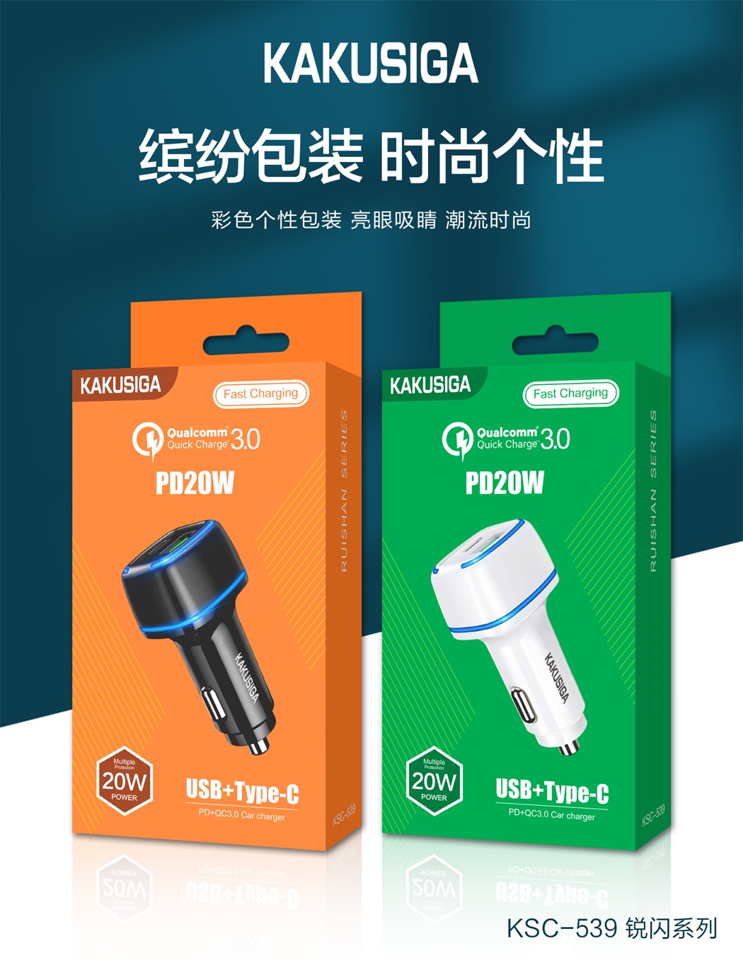 产品名称:锐闪系列 PD+QC3.0车载充电器