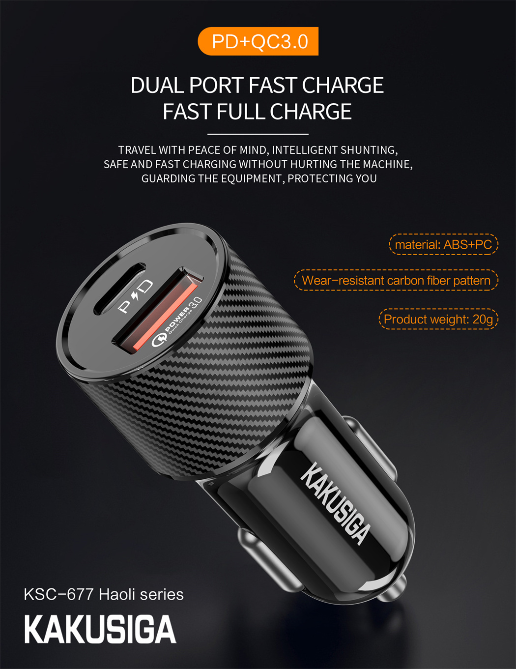 Output:USB:QC3.0 5V/3A、9V/2A、12V/1.5A(18W);Type-C:5V/3A、9V/2.22A、12V/1.67A (PD20W);Total power output:38W(Max)