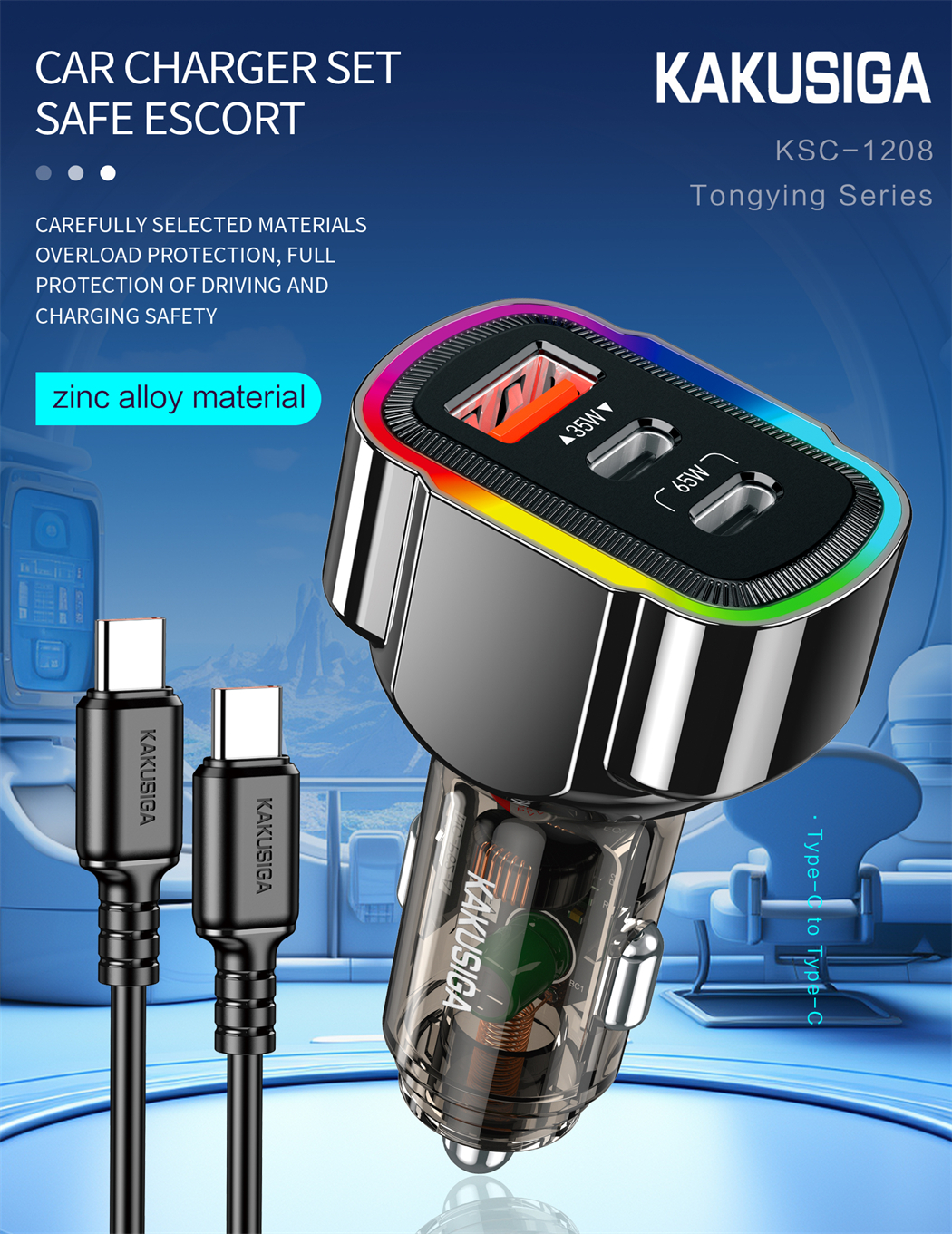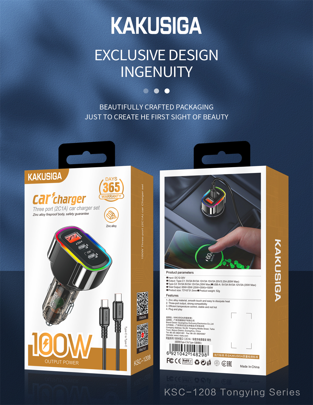 name:Tongying Series 100W three-port (2C1A) car charger set (Type-C to Type-C)