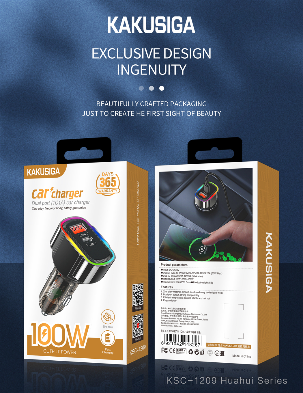 name:Huahui Series 100W Dual Port (1A1C) Car Charger