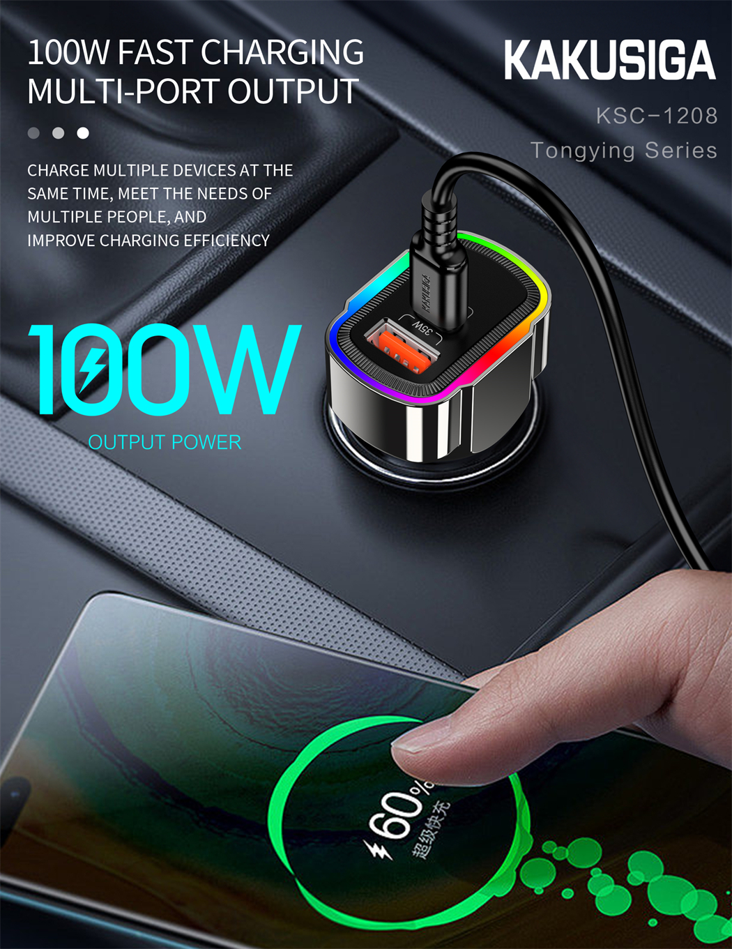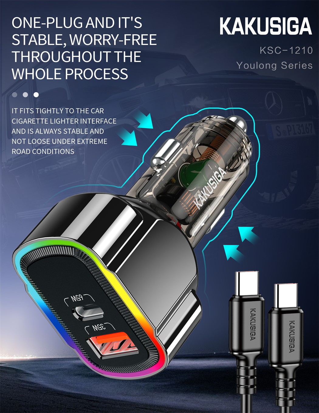 name:Youlong Series 100W Dual Port (1A1C) Car Charger Kit (Type-C to Type-C)