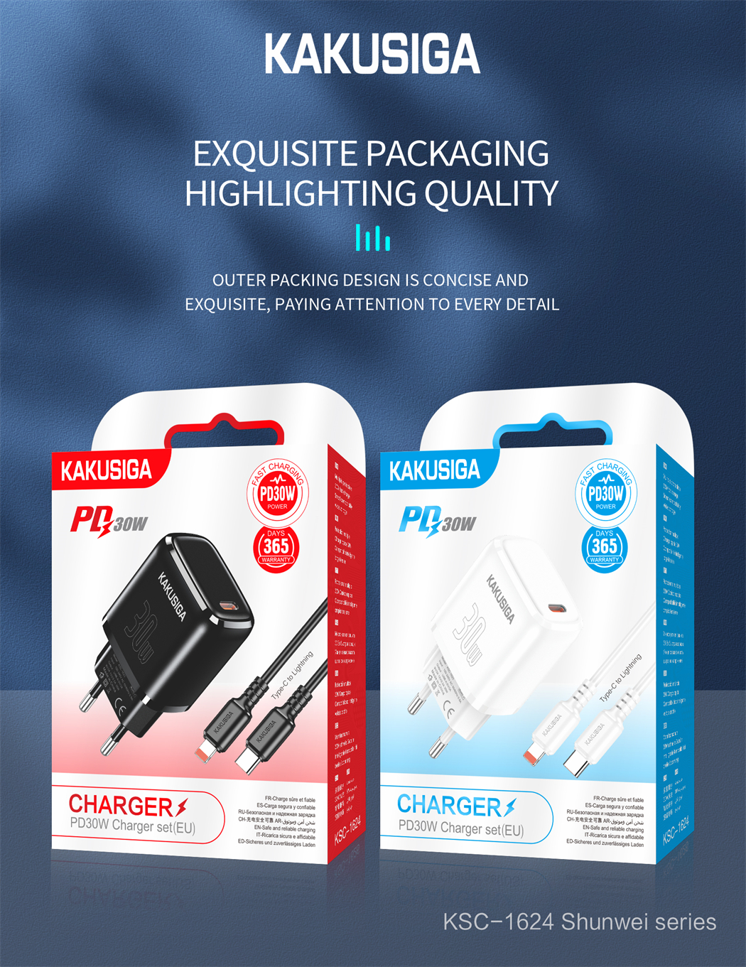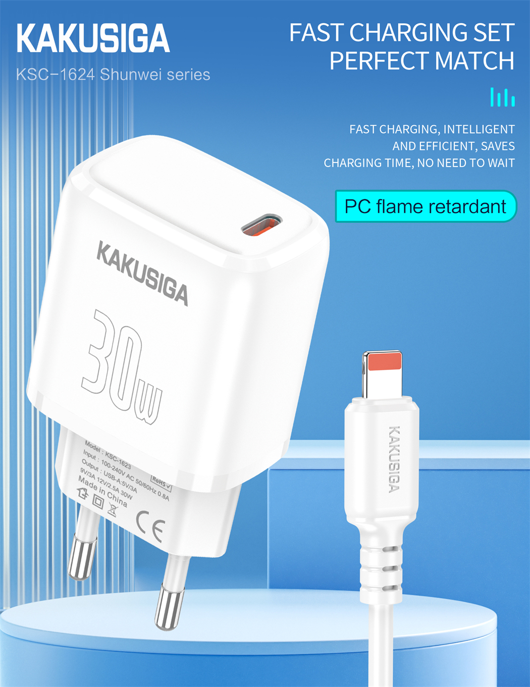 name:Shunwei series PD30W charger set (European standard) Type-C to Lightning