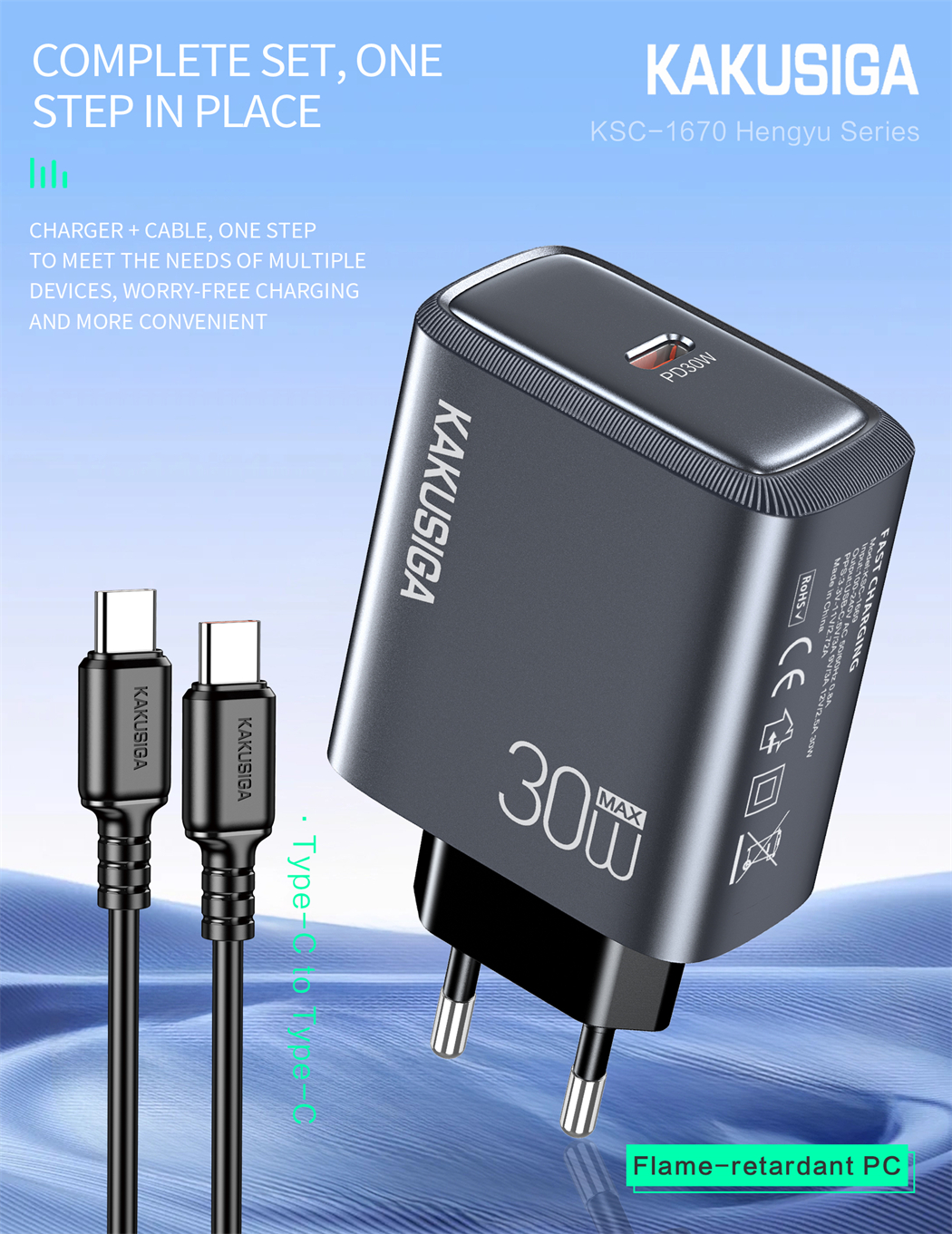 name:Hengyu Series PD 30W Charger Kit (EU) Type-C to Type-C