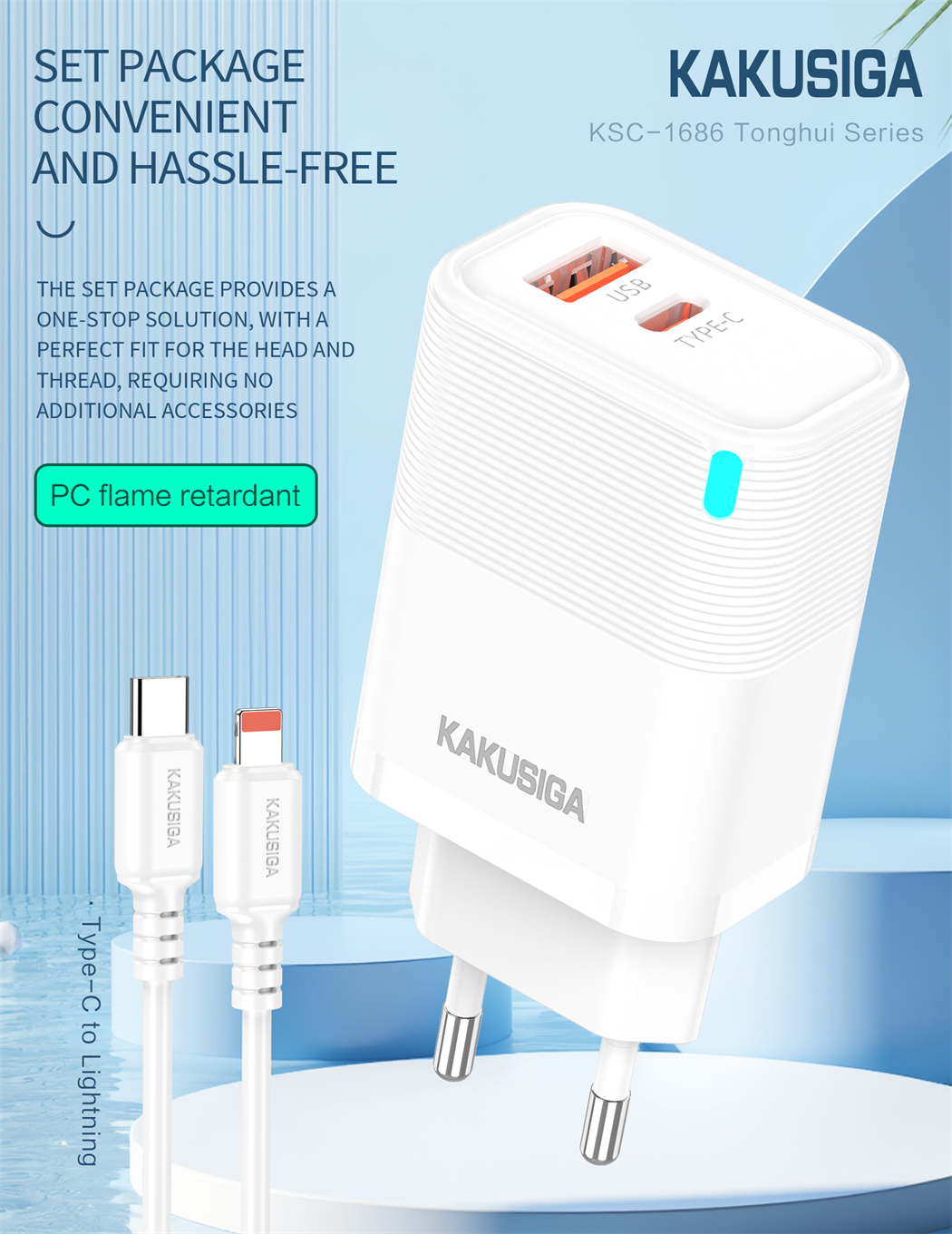 name:Tonghui Series PD30W + QC3.0 Charger Kit (European Standard) Type-C to
