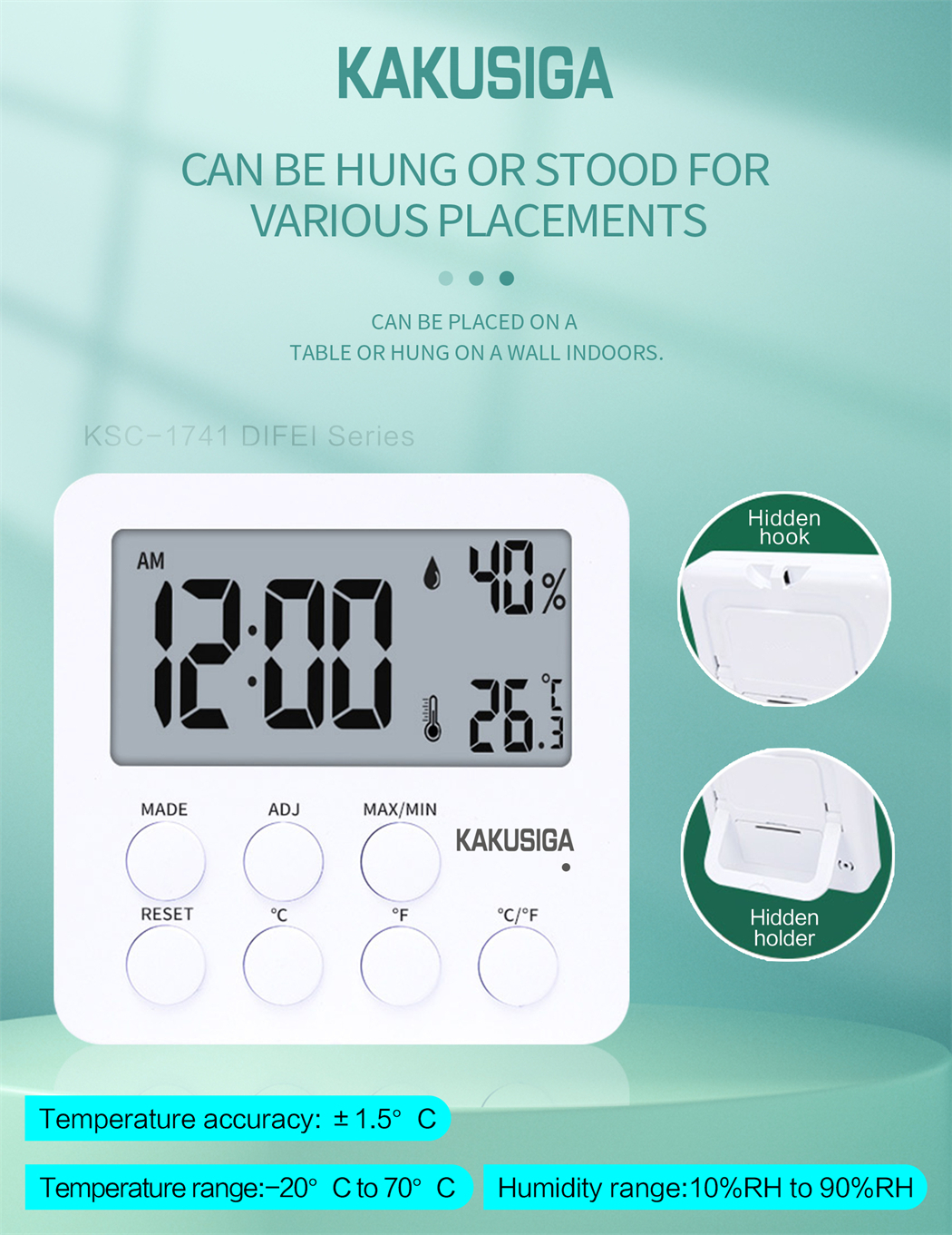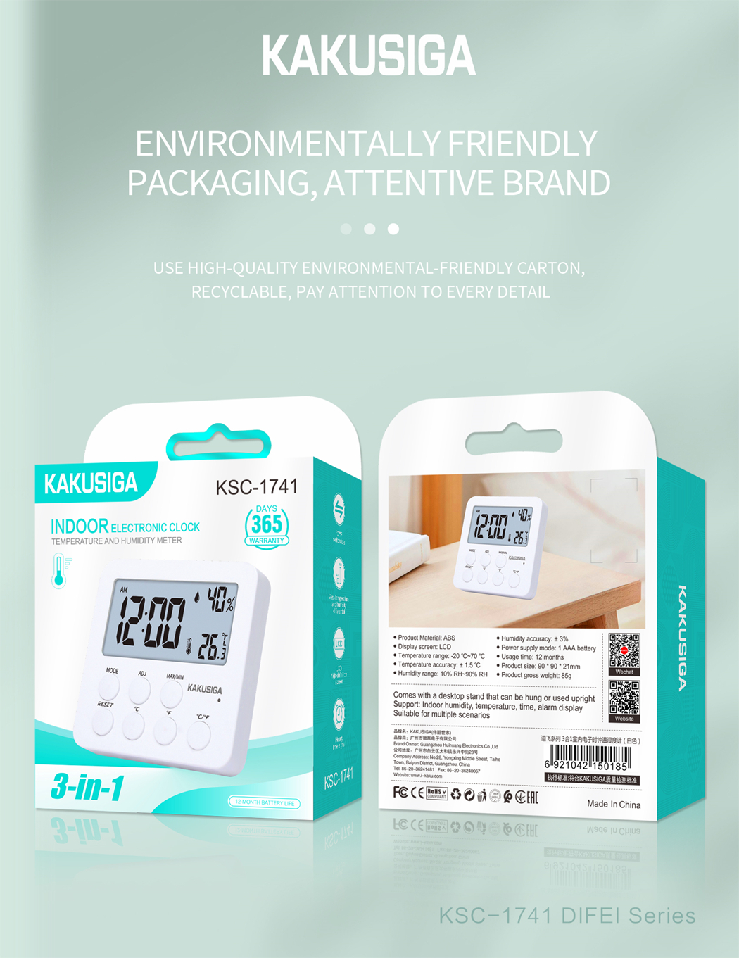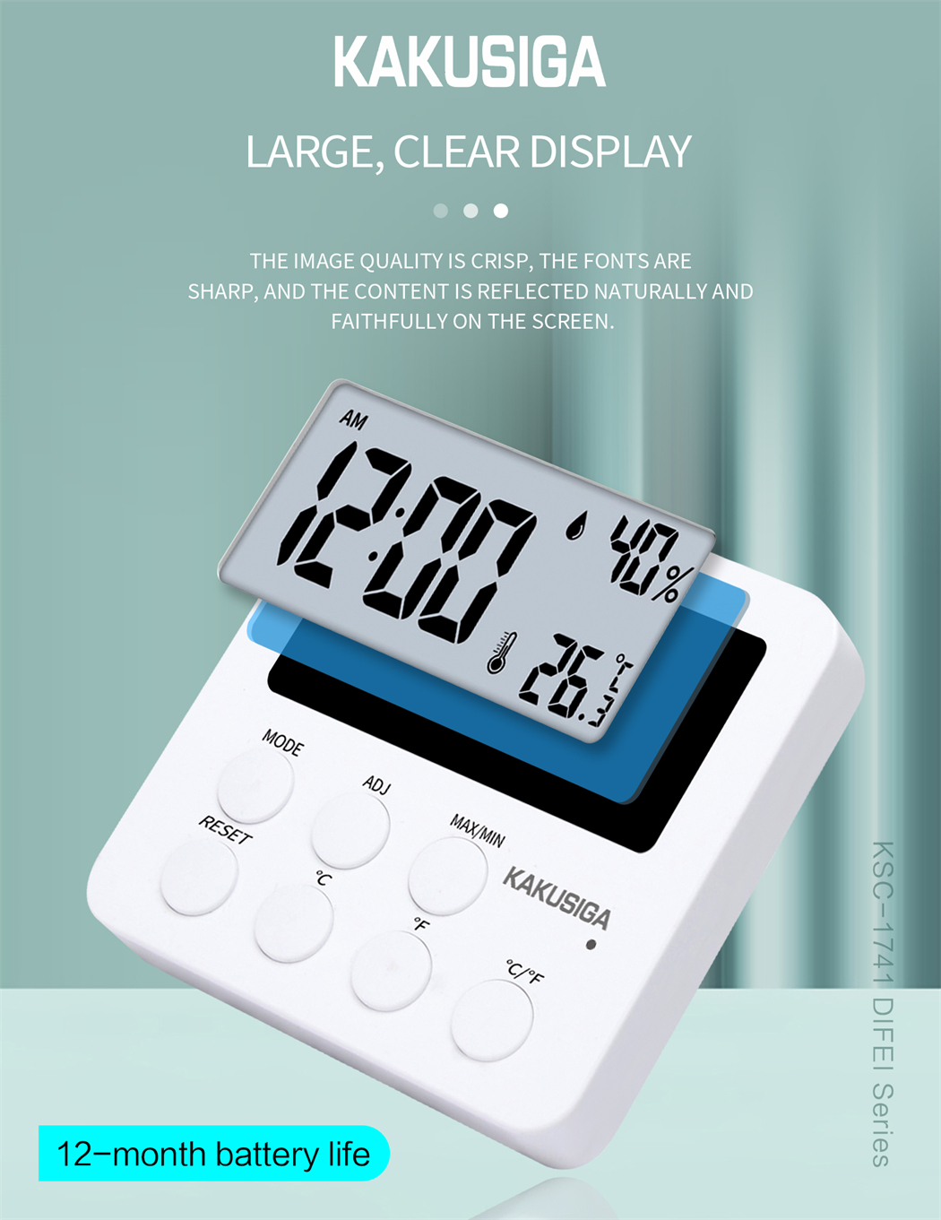 name: DIFEI Series 3-in-1 Indoor Digital Clock Thermometer and Hygrometer